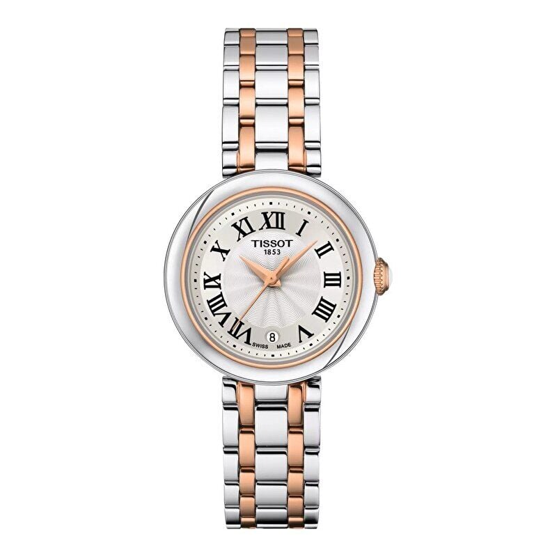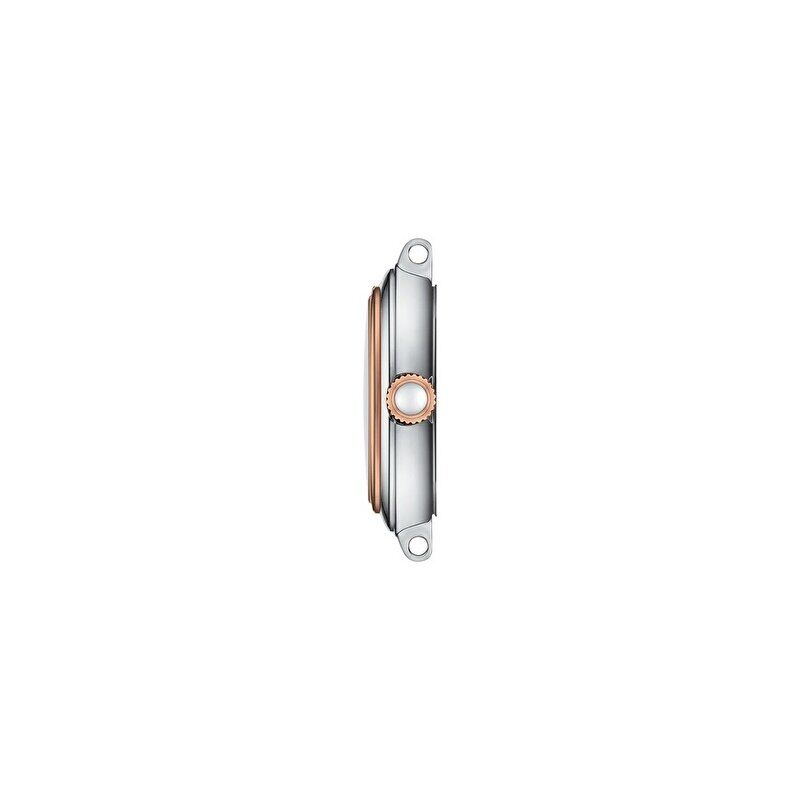 Klasik tasarımlar arasında Bellissima Small Lady'den daha zamansız olanı yok. Yuvarlak kasa ve beş halkalı bilezik çelikten üretilmiş ve saate lüks bir his ve gündüzden geceye çok yönlülük kazandıran sıcak pembe altın rengi PVD detaylarla zenginleştirilmiş. Saat, güzel bir gül şeklinde guilloché desenine sahip gümüş renkli bir Roma rakamlı kadrana sahip ve son dokunuşu ise kurma koluna yerleştirilmiş göz alıcı beyaz seramik kabaşon. Bu zarif detaylarla Bellissima Small Lady, ona her gün onu sevdiğinizi hatırlatacak.